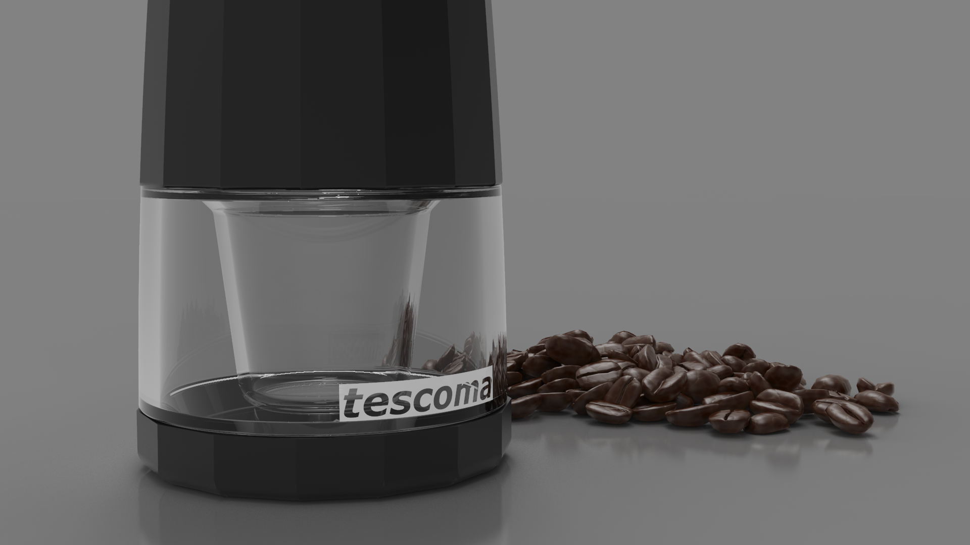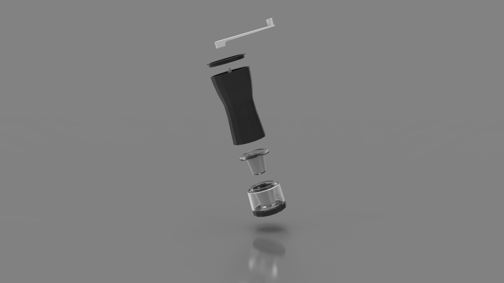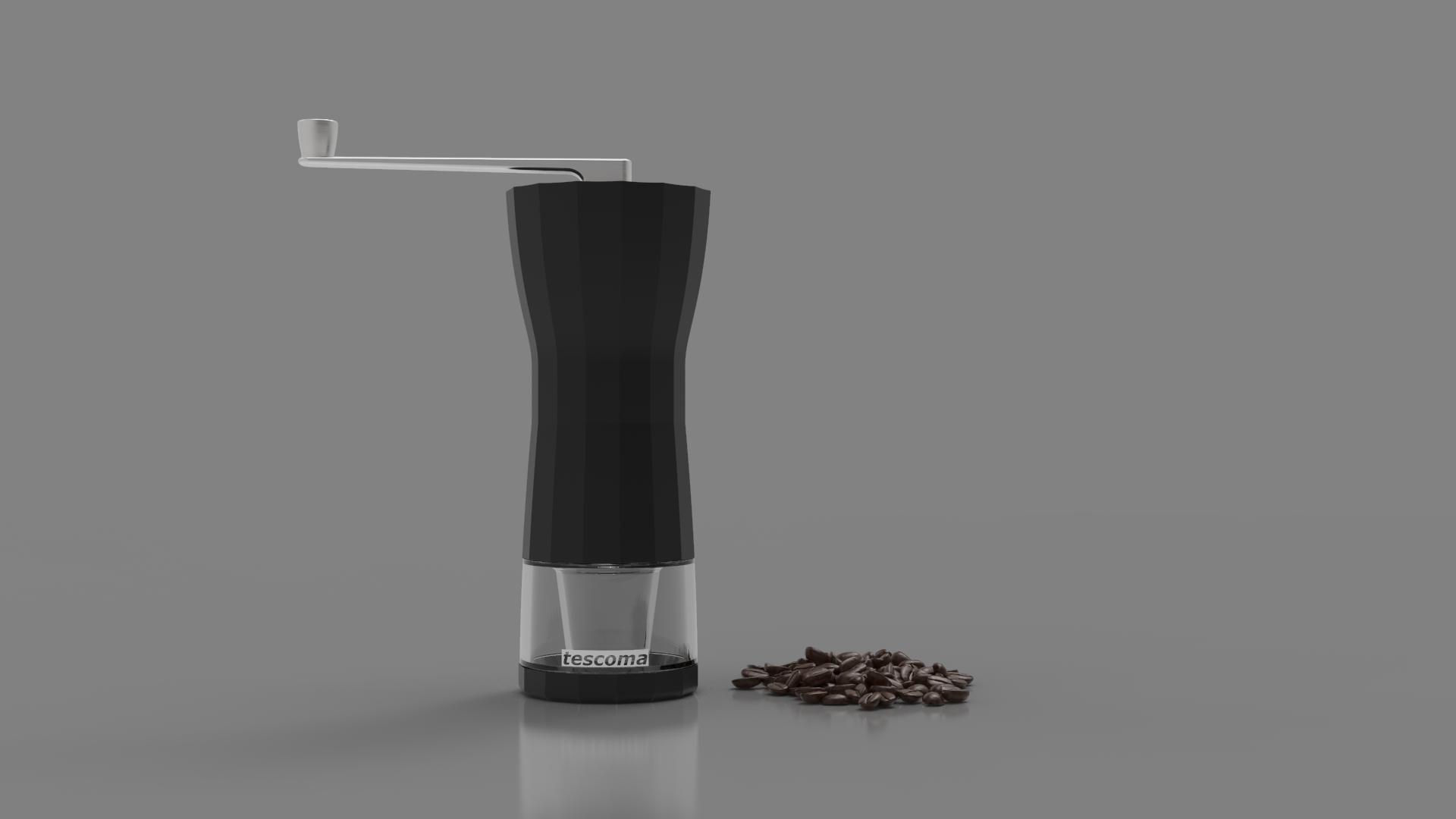 In this coffee grinder design, I focused on ergonomics which is important for comfortable grinding. The polygon used on the grinder body ensures a firm grip and also prevents the grinder body from slipping when grinding coffee.